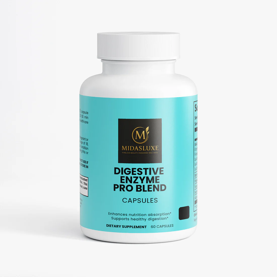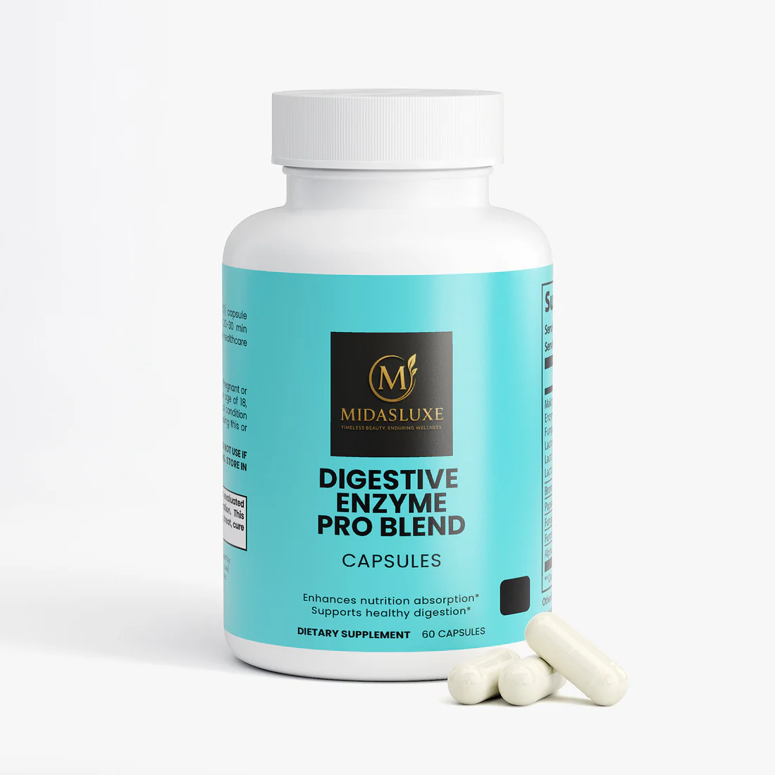 Ingredients: Makzyme-Pro™, Enzyme Blend (Fungal Protease from Aspergillus oryzae, Lactobacillus acidophilus, Lactobacillus cases, Lactobacillus plantarum), Bromelain, Papain, Fungal Lipase, Fungal Lactase, Alpha Galactosidase, Hypromellose (vegetable capsule), vegetable Magnesium Stearate, Silicon Dioxide.